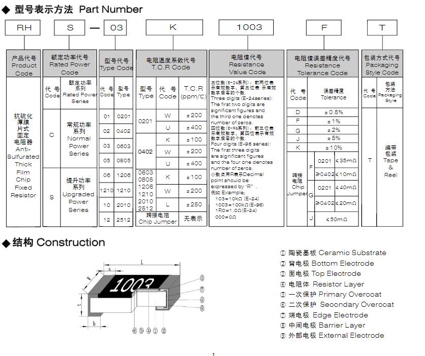 風(fēng)華高科高阻值厚膜片式固定電阻器型號表示方法:
