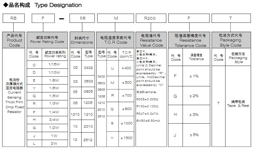 風(fēng)華電流檢測厚膜片式固定電阻器型號(hào)命名規(guī)則:
