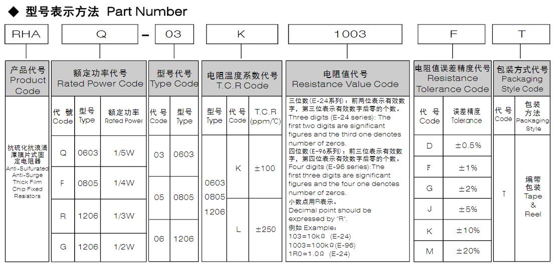 風華高科抗硫化抗浪涌厚膜片式固定電阻器 型號命名規(guī)則: