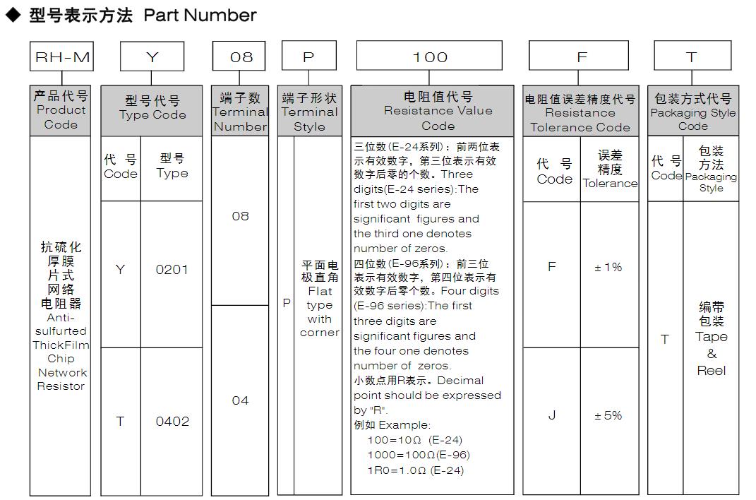 風(fēng)華高科抗硫化厚膜片式網(wǎng)絡(luò)電阻器-平面電極型號(hào)命名規(guī)則: