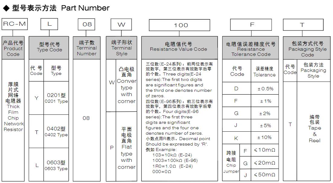 風(fēng)華高科厚膜片式網(wǎng)絡(luò)電阻 型號命名規(guī)則: