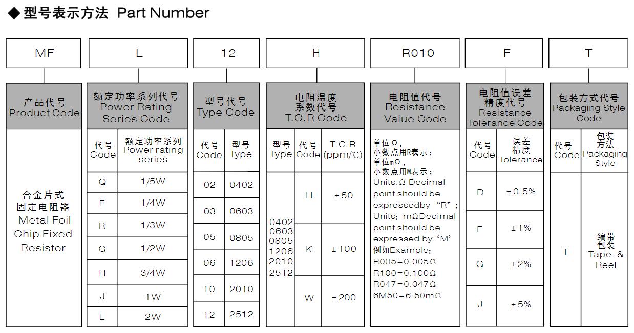 風(fēng)華高科合金片式固定電阻器型號命名規(guī)則: