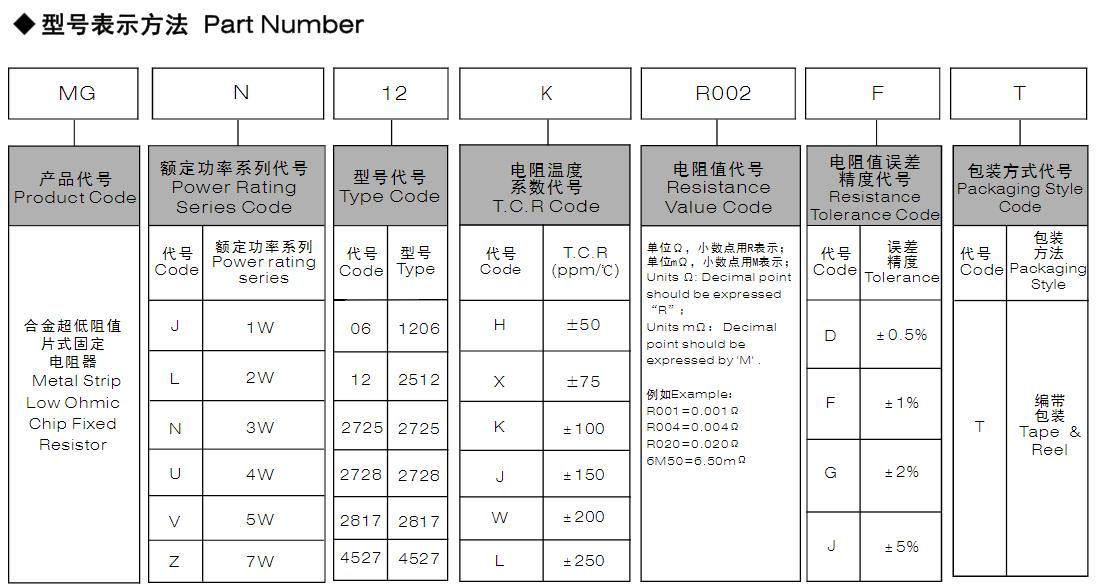 風(fēng)華高科合金超低阻值片式固定電阻器型號(hào)命名規(guī)則: