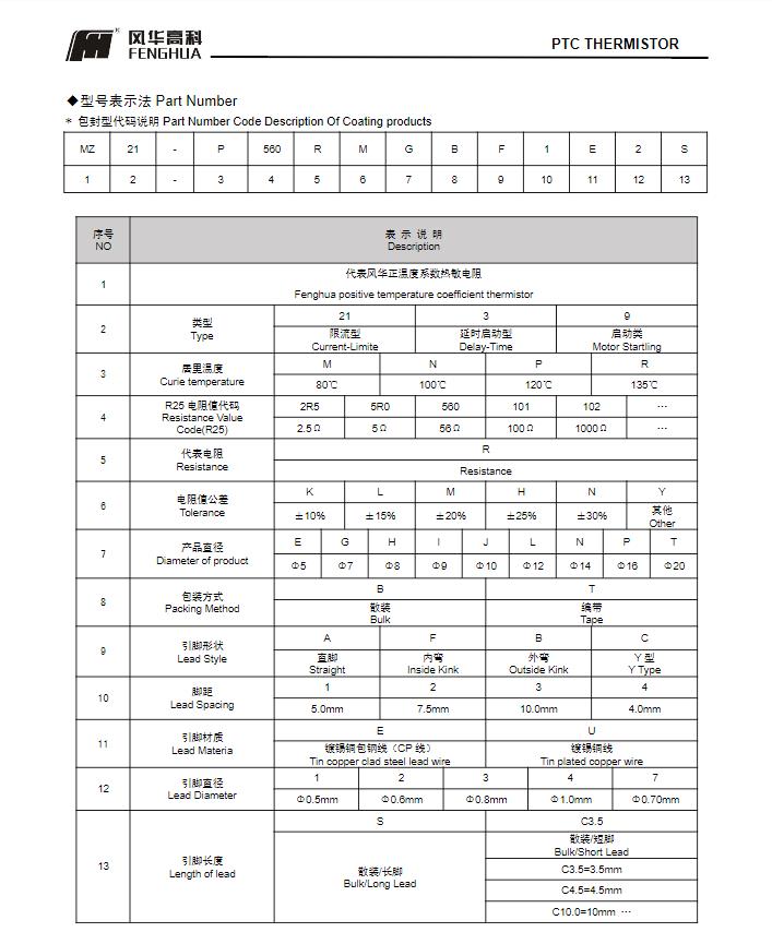 風華高科_熱敏電阻 _PTC熱敏電阻