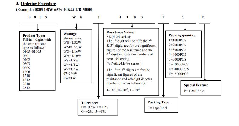 額定功率:1/32W 1/20W 1/16W 1/10W 1/8W 1/4W 1/3W 1/2W 3/4W 1W