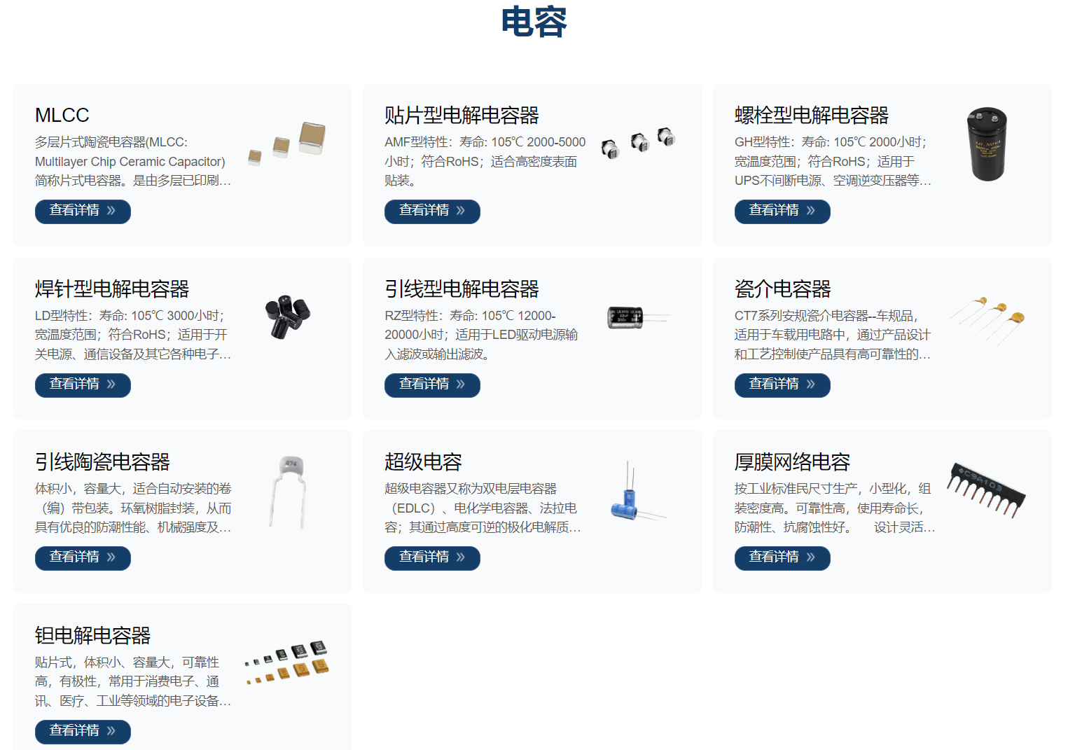 風(fēng)華電容種類有:多層片式陶瓷電容、貼片型電解電容器、引線型電解電容器、超級(jí)電容、瓷介電容器、引線陶瓷電容器、螺栓型電解電容器、焊針型電解電容器、厚膜網(wǎng)絡(luò)電容、鉭電解電容器等產(chǎn)品。