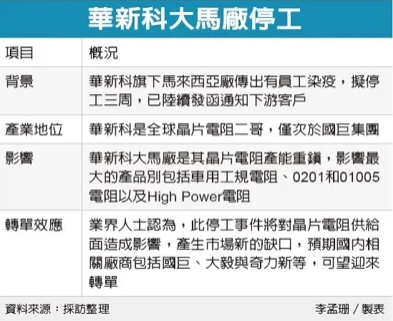 據(jù)報(bào)道,華新科已通知下游EMS客戶,馬來(lái)西亞工廠自23日起已暫停三周。 在此之前,華新科曾將先前加工的一些半成品運(yùn)往臺(tái)灣,但數(shù)量并不大。 華新麗華集團(tuán)是華新麗華集團(tuán)旗下主要的被動(dòng)組件制造商。 它占據(jù)了全球第二大片式電阻器行業(yè)市場(chǎng),僅次于國(guó)巨集團(tuán)。 第三大工廠是大邑,該廠100%在臺(tái)灣生產(chǎn)。 業(yè)內(nèi)人士認(rèn)為,在持續(xù)的住房經(jīng)濟(jì)商機(jī)下,片式電阻器的供需相對(duì)緊張。 華新科馬來(lái)西亞工廠的停產(chǎn)將使市場(chǎng)供應(yīng)更加惡化,下游訂單的浪潮將隨時(shí)觸發(fā)。