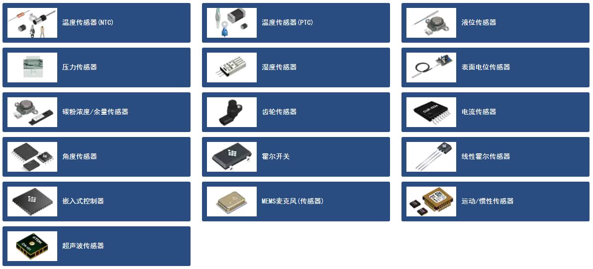 TDK公司的完整系列傳感器以TDK、EPCOS、InvenSense、Micronas和Tronics等產(chǎn)品品牌銷售,包括溫度傳感器、壓力傳感器、角度傳感器、電流傳感器。 精確的電流傳感器是電動汽車的智能電源和智能電網(wǎng)不可缺少的。例如,溫度傳感器和傳感器系統(tǒng)被用來調(diào)節(jié)冰箱和空調(diào)系統(tǒng)的溫度,或者測量電動汽車工作液的溫度。壓力傳感器廣泛應(yīng)用于汽車、工業(yè)電子、醫(yī)療工程和環(huán)境技術(shù)等用途?;诨魻杺鞲衅骰騎MR技術(shù)的磁場傳感器幾乎可以在任何需要測量位置、直線或旋轉(zhuǎn)運動、甚至電流的機器上找到。 基于運動的設(shè)備在三維空間內(nèi)檢測和跟蹤物體的運動,從而使許多消費電子設(shè)備(包括移動電子設(shè)備、可穿戴電子設(shè)備、智能家居電子設(shè)備、汽車和工業(yè)電子設(shè)備)具有關(guān)鍵功能。對于運動傳感的高性能要求,TDK提供MEMS產(chǎn)品,如用于導(dǎo)航、運動跟蹤和運動控制以及光學(xué)穩(wěn)定的加速度計和陀螺儀。