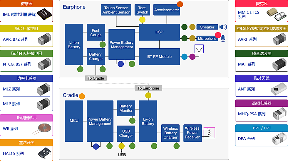 近年來,TWS(真無線立體聲)技術被廣泛應用在藍牙耳機領域中,TDK也擁有可應用在TWS中的豐富產(chǎn)品線,例如MEMS麥克風、陷波濾波器、噪音濾波器、高頻電感器、傳感器、霍爾開關等。本期推文將為各位介紹應用在TWS中的TDK部分產(chǎn)品系列。