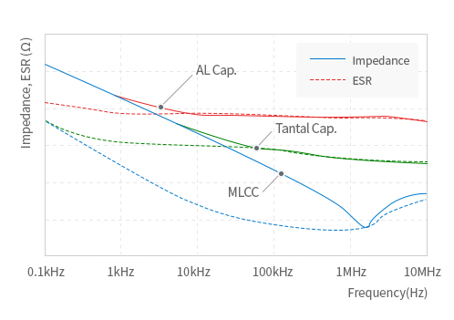 MLCC Class2(X5R, X7R 等) 產(chǎn)品,如下所示,隨著 DC 電壓增加,其容量會(huì)漸漸下降。但像Class1 產(chǎn)品 C0G,即使加電壓其容量也沒(méi)有任何變化。像Class2 產(chǎn)品,電介質(zhì)內(nèi)的 Dipole在加 DC 電壓后,會(huì)按照電壓所處的方向整齊排列,當(dāng)所加的 DC 電壓變大,因 DC 電壓而固定方向的 Dipole也會(huì)增加。MLCC的容量由對(duì) AC 電壓做出反應(yīng)的 Dipole決定,
