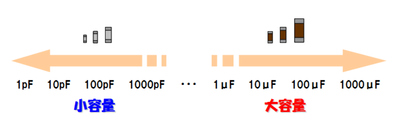 什么是電容的靜電容量?靜電容量是表示電容器的蓄電能力的物理單位,以F(法拉)為單位表示。在陶瓷電容器使用的范疇里內(nèi),F(xiàn)單位已經(jīng)過大,因此常使用μF(微法、法拉的100萬分之一)、pF(皮法、法拉的1兆分之1)單位。根據(jù)使用的地方、狀況的不同,基準(zhǔn)也不同,但陶瓷電容器在1μF以上時就稱為大容量,低于1000pF時稱為小容量。