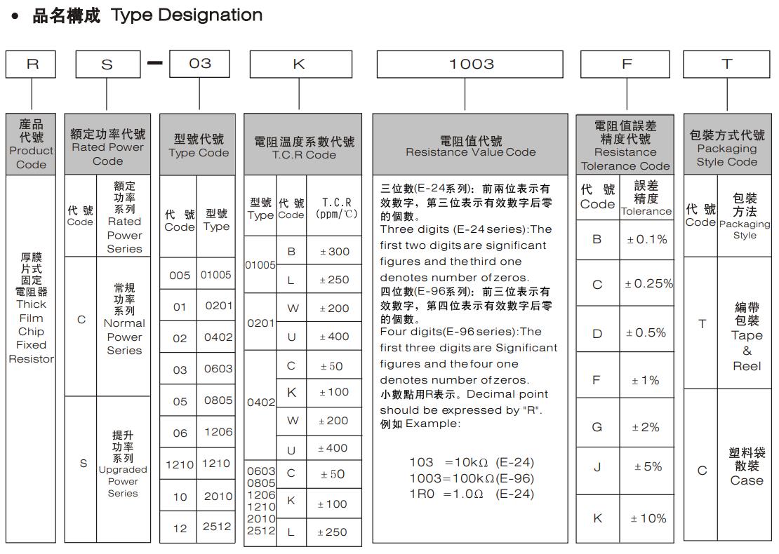 國巨電阻都是以R開頭,前面2個字母表示電阻的系列名稱。